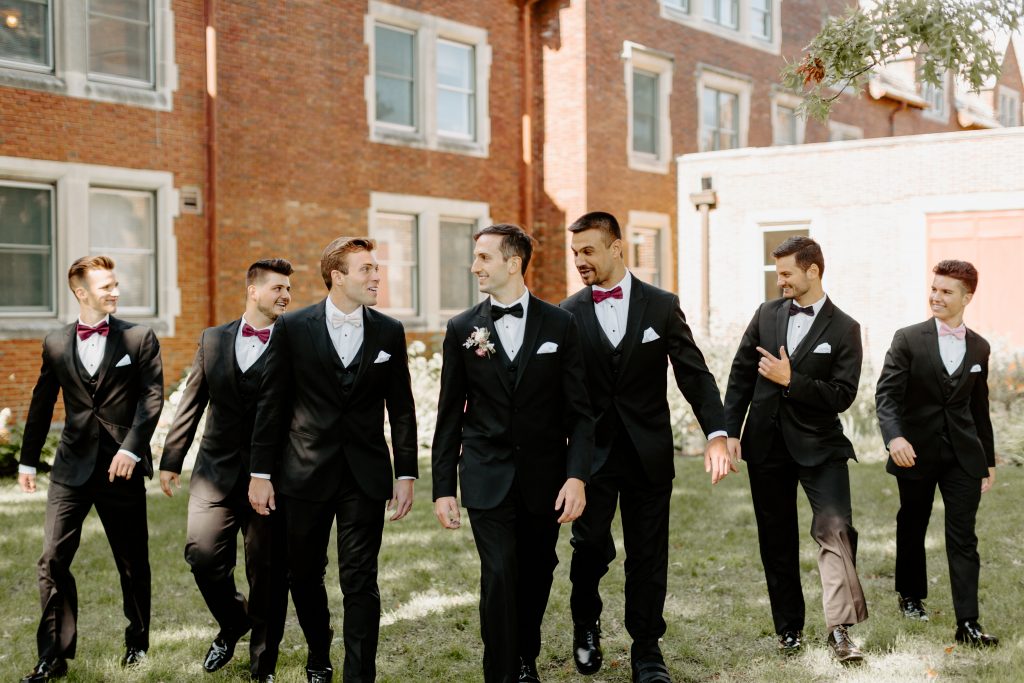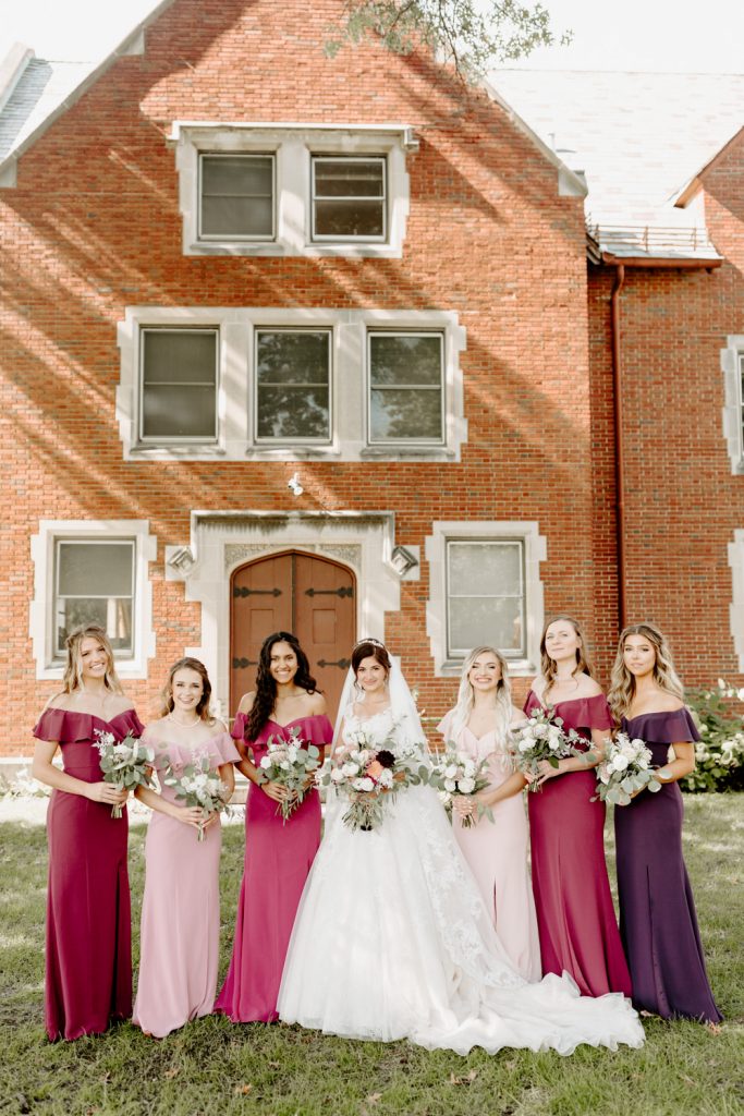 Alina’s bridesmaids added a much-needed pop of color with varying shades of plum, wine, and blush dresses.
